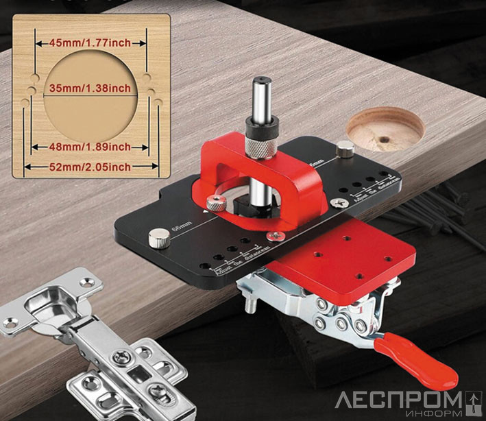 Это, например, шкантовые кондукторы для выполнения отверстий под разные шканты и приспособления, позволяющее точно и качественно выполнять отверстия под конфирматы, полкодержатели и т. п.