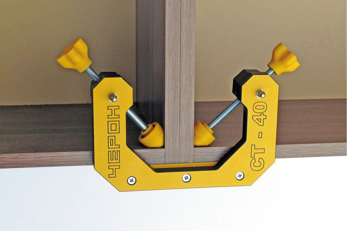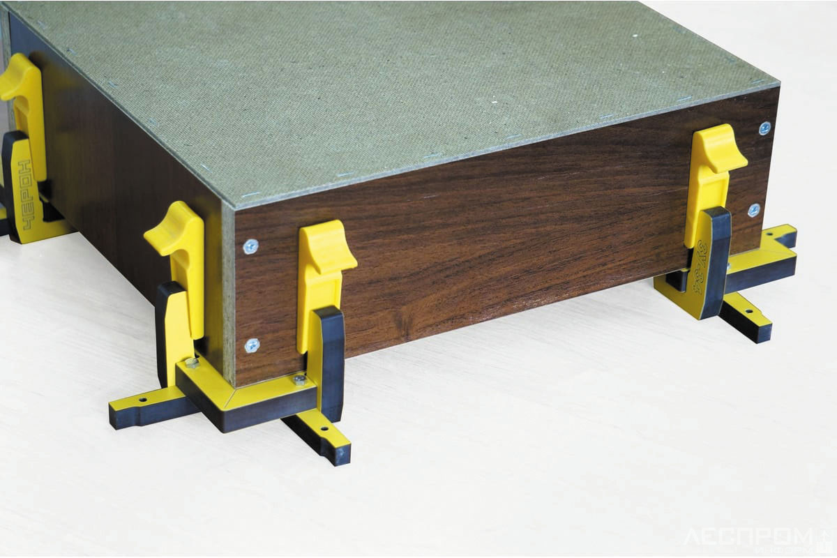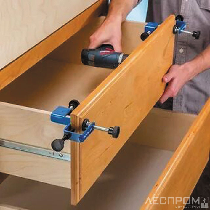 Способ крепления фасада к мебельному ящику при помощи специальных кондукторов (струбцин) показан на рис. 9.
