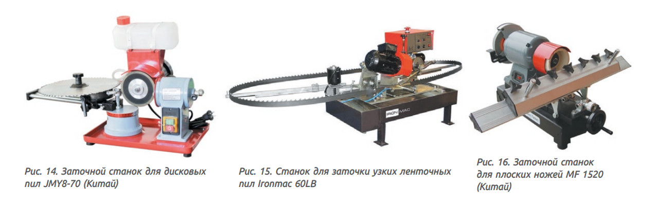 Для заточки отдельных видов инструмента можно использовать специализированное заточное оборудование. Простой станок для заточки дисковых пил JMY8-70 (рис. 14) предназначен для заточки пил с твердосплавными пластинами по передней и задней граням, а также косого угла по передней и задней граням. Размеры заточного круга 125 × 10 мм, угол поворота круга ±20°, угол поворота рамки ±30, ±40°, диаметр пил 100–700 мм, мощность 250 Вт, вес 35 кг.