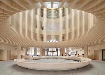 «И все же, настоящий сюрприз, как оказалось, ждет вас внутри. Возвышающиеся деревянные конструкции над фойе открытой планировки создают поистине уникальную атмосферу, которая приглашает посетителя на мгновение присесть на большую круглую скамью, установленную здесь с заботой о вашем комфорте», — сообщил Луома, добавив, что был впечатлен присутствием природы в проекте, не только в саду на крыше, но и во всем интерьере.